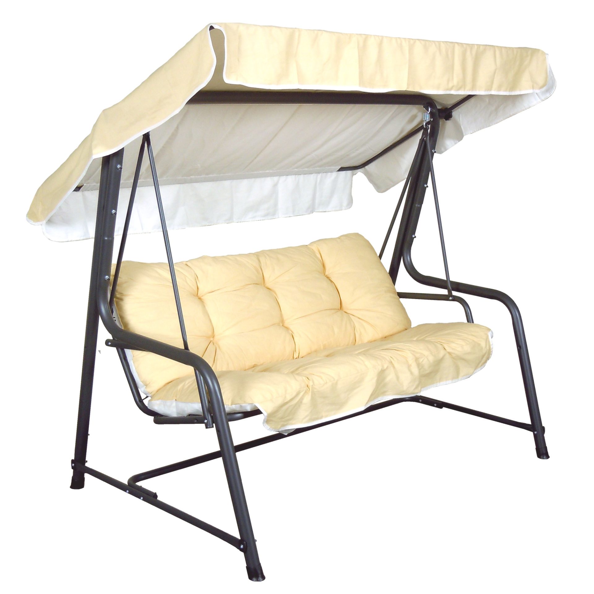 Leagan balansoar gradina, Damasco, 3 locuri, 240 kg, structura otel, 188x113x153, perne incluse, Crem