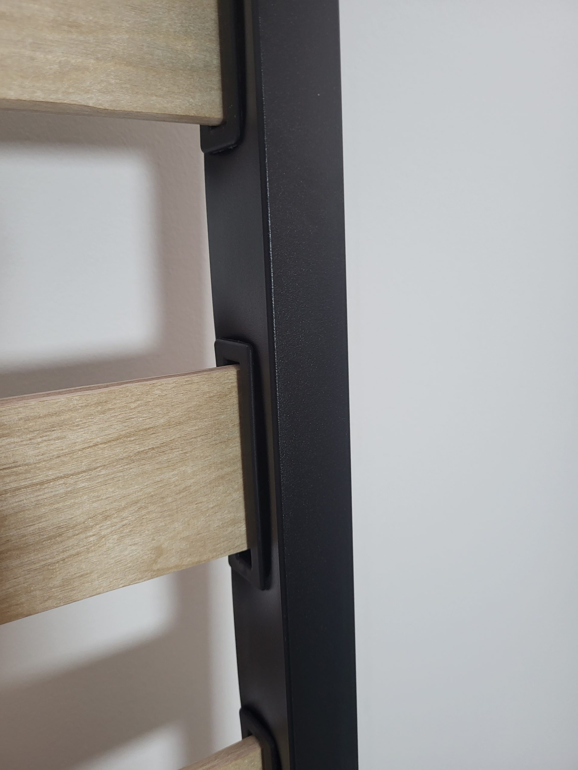 Somiera este prevazuta cu 4 picioare patrate din otel cu dimensiunile 3 x 3 x 25 cm , cu sistem de prindere in U. Picioarele dispun de talpa de plastic pentru a preveni zgarierea suprafetelor cu care intra in contact. Se asambleaza cu usurinta.